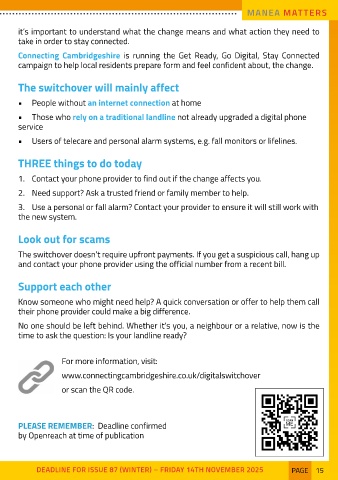 DEADLINE FOR ISSUE 87 (WINTER) – FRIDAY 14TH NOVEMBER 2025 PAGE 15