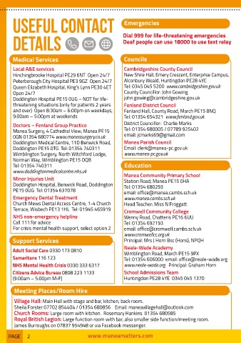 Manea Surgery, 4 Cathedral View, Manea PE15 Tel: 01354 680005 / 07789 925402