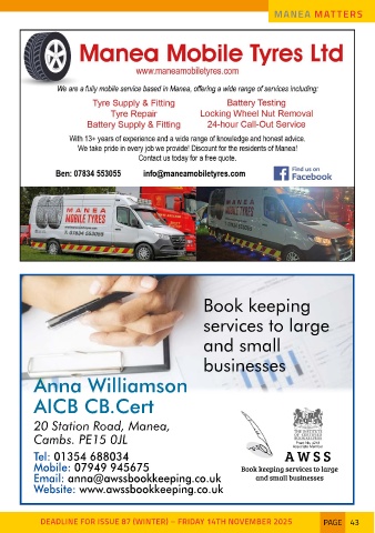 DEADLINE FOR ISSUE 87 (WINTER) – FRIDAY 14TH NOVEMBER 2025 PAGE 43