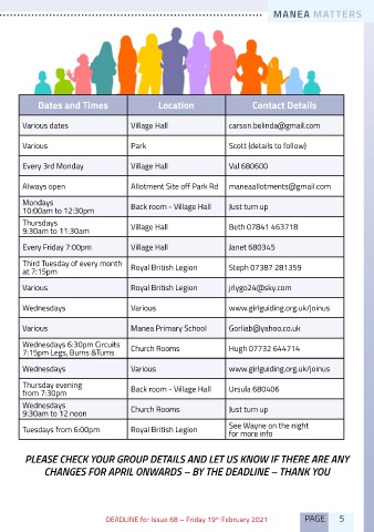DEADLINE for Issue 68 – Friday 19 February 2021 PAGE 5